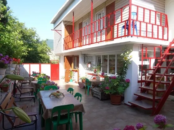 Гостевой дом на 22 номера на земельном участке 3.5 сот. в центре п.Лазаревское! Состоит из 1/2 жилого дома на 4 комнаты (100 кв.м.) и 3 построек на 3 комнаты (40 кв.и), на 4 комнаты(70 кв.м) и на 8 комнат (110 кв.м). Центральное электричество 3 фазы, водоснабжение и канализация, природный газ, отопление котел Baxi. В гостевом доме есть 4 общие кухни-столовые. Номера с удобствами на этаже "эконом" - 15 номеров (10-15 кв.м.) и номера с удобствами "стандарт" с односпальные или двуспальная кровати, кресло-кровать, шкаф, стулья, прикроватные тумбочки, вешалка, зеркало, вентилятор, кондиционер, телевизор. До моря 15 мин по ровной зеленой улице на центральный пляж, рядом Гипермаркет Магнит, торговый центр, кафе, столовые, развлечения. Высокий доход от гостевого дома Вам обеспечен!